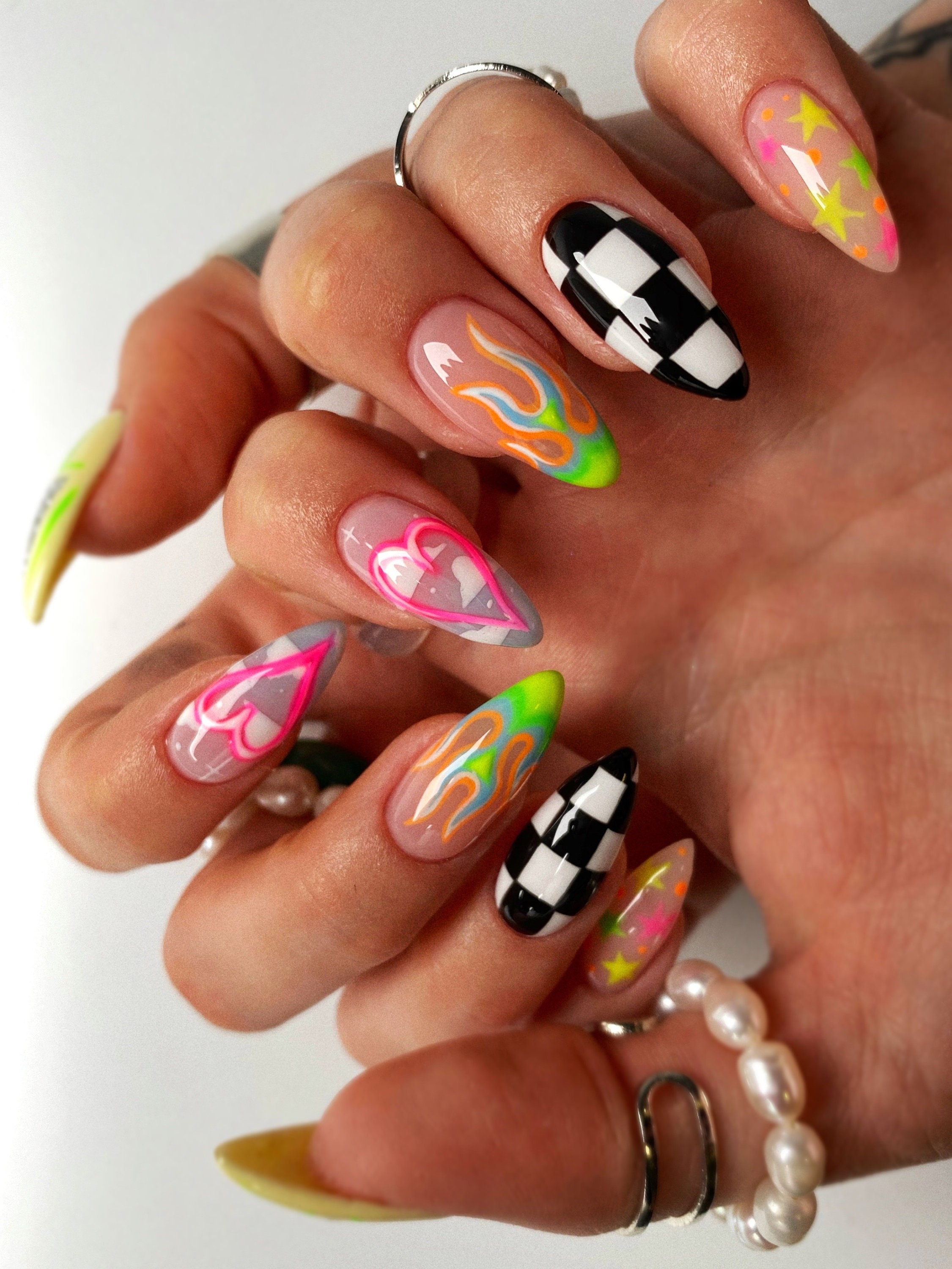Colorful Fun Press On Nails Smile 24 Pcs False Nail Art Etsy Uk